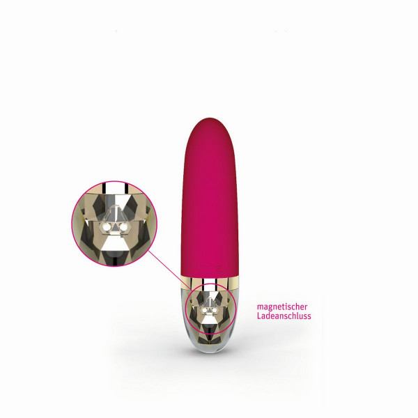 Выполнен вибратор из премиального медицинского силикона в изумительном цвете фуксия. Абсолютно гипоаллергенный! Не имеет швов, стыков, посторонних запахов. Не впитывает запахи в себя. По тактильным ощущениям безумно бархатистый, в меру упругий